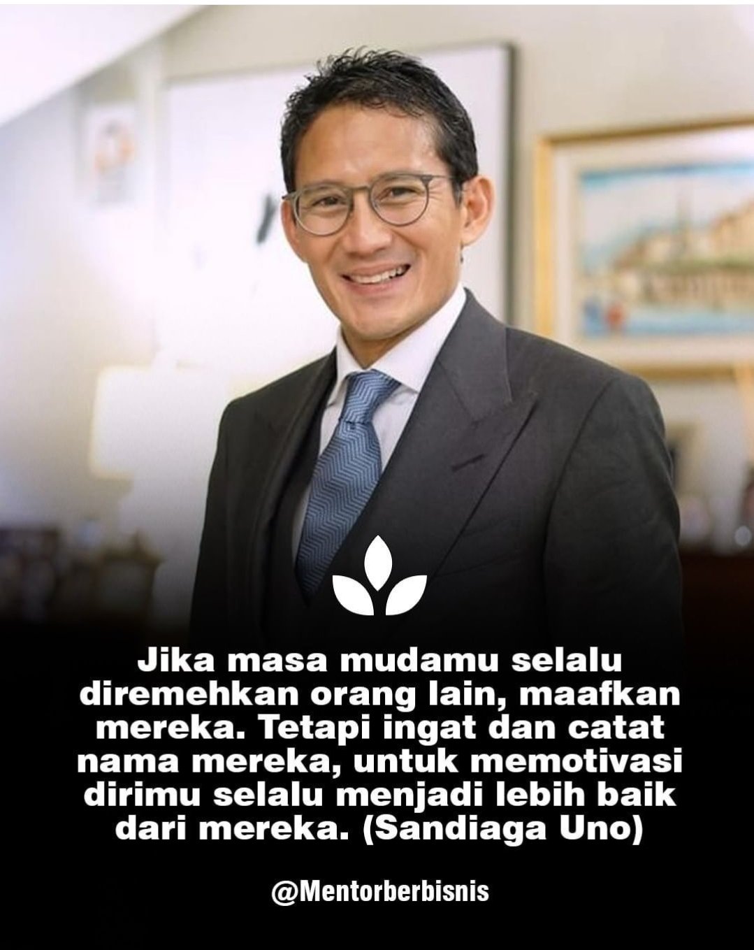 . Pernah Memimpin Himpunan Pengusaha Muda Indonesia HIPMI Sebuah kiriman dibagikan oleh Sandiaga Salahuddin Uno sandiuno Selain sukses di dunia bisnis Sandi. Kata Motivasi Kocak dan Receh Penuh Makna Bijak yang Menjadi Pelajaran 40 Kata-Kata Bijak Kehidupan Setelah Menikah Cocok untuk Pengantin Baru. Ia tidak hanya memberikan motivasi untuk bekerja keras tetapi ia.